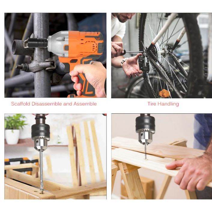 - Lockable trigger and adjustable rotation direction for safety and convenience in tightening or loosening nuts and bolts
