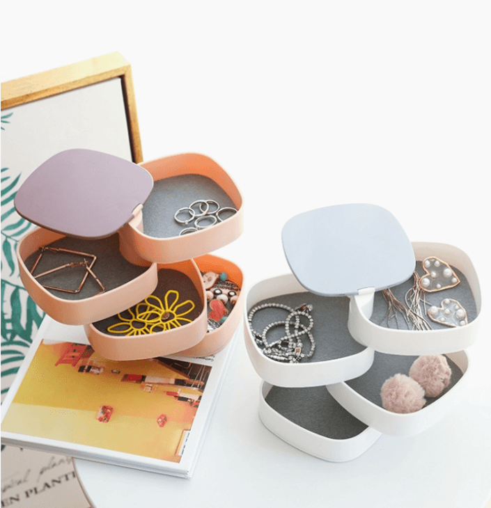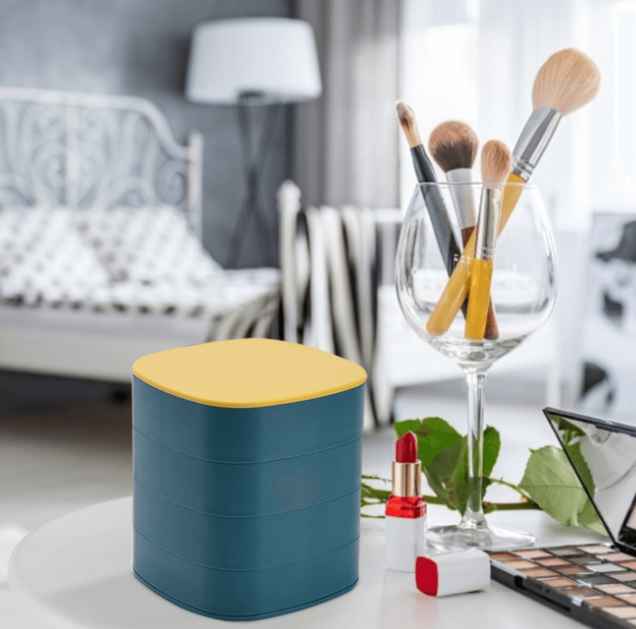 The Jewellery Box with Mirror (4 Tier) is designed to solve these common problems by providing an efficient and elegant way to store your jewelry, accessories, and even stationery. Its compact size of 12.2 x 11.2 cm fits easily on your dresser or vanity, helping you keep everything neat and accessible.