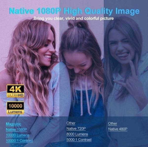 Experience crystal-clear picture quality with native 1080P resolution, providing sharp detail and vibrant colors for an immersive viewing experience.