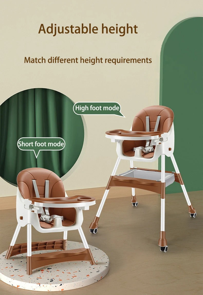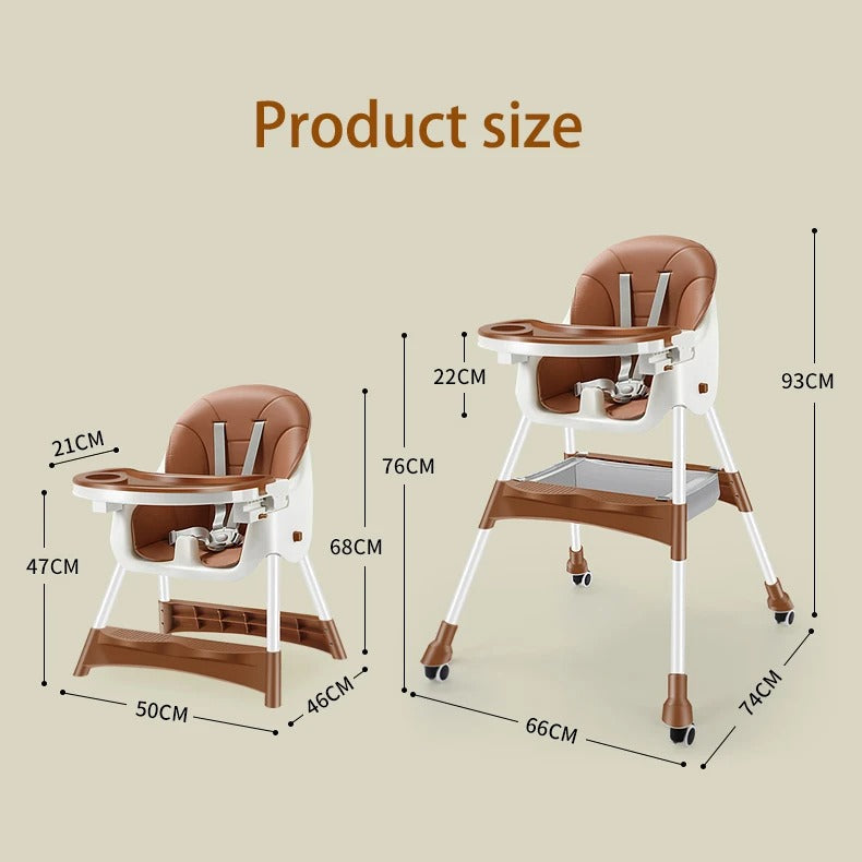 One good dining chair is enough to switch between three modes freely. When the baby grows up, take the plate and use it as a small stool to eat, study, and watch TV. One key fold Stand up and fold. It does not take up space, enough to be placed in any corner for easy storages. Classic innovation. Subverts design. The high chair can be adjusted into a low stool to meet the needs of different periods Healthy Double Layer Plate Movable double-layer plate, remove the first layer for cleaning after the baby eats