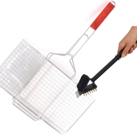 Rectangular Stainless steel loose lid grill grid. Suitable for camping braai. Easily fold over. Boerewors, Chicken, Chops, Kebabs and much more. Electro polished - stainless steel to ensure durability and long lasing. Wooden handle for sturdy grip to ensure full control when turning. Colour: silver.