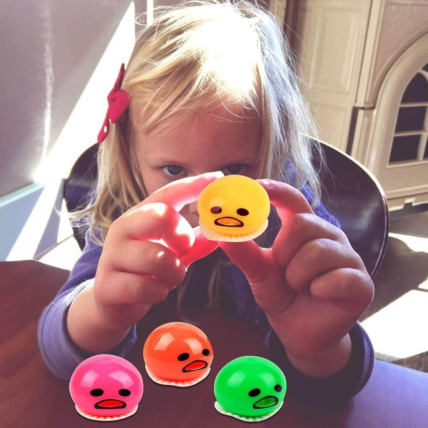 Size: 4cm. Available colour will be supplied. Squish it and watch the goo ooze! These hilarious egg-shaped toys come with expressive faces and a surprise slime burst that pops out of their mouths when squeezed.