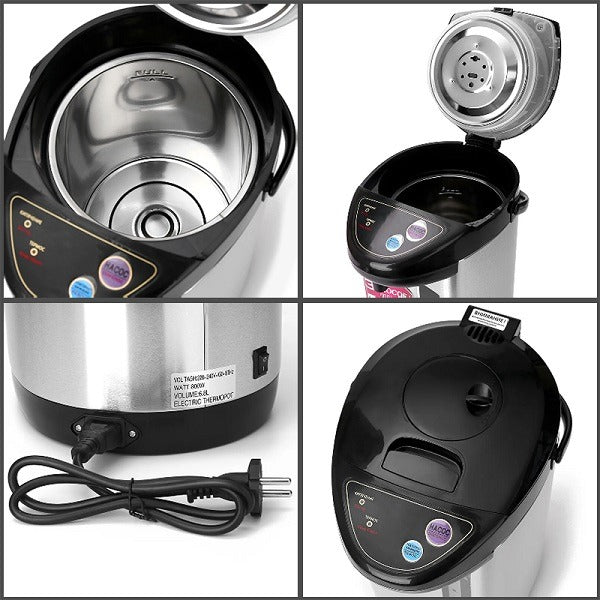 The power source for this 6.8l tank water boiler is electricity and the material used is stainless steel