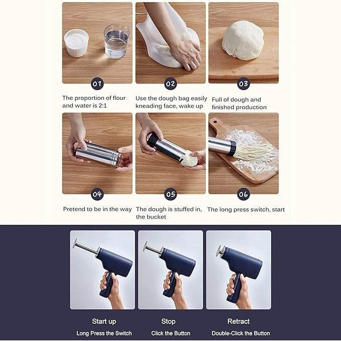 The Electric Noodle Machine is Controlled by One Button. Long Press: On; Press Once: Stop; Double Press: Retract. The Portable Handheld Ramen Maker is Detachable and Easy to Clean