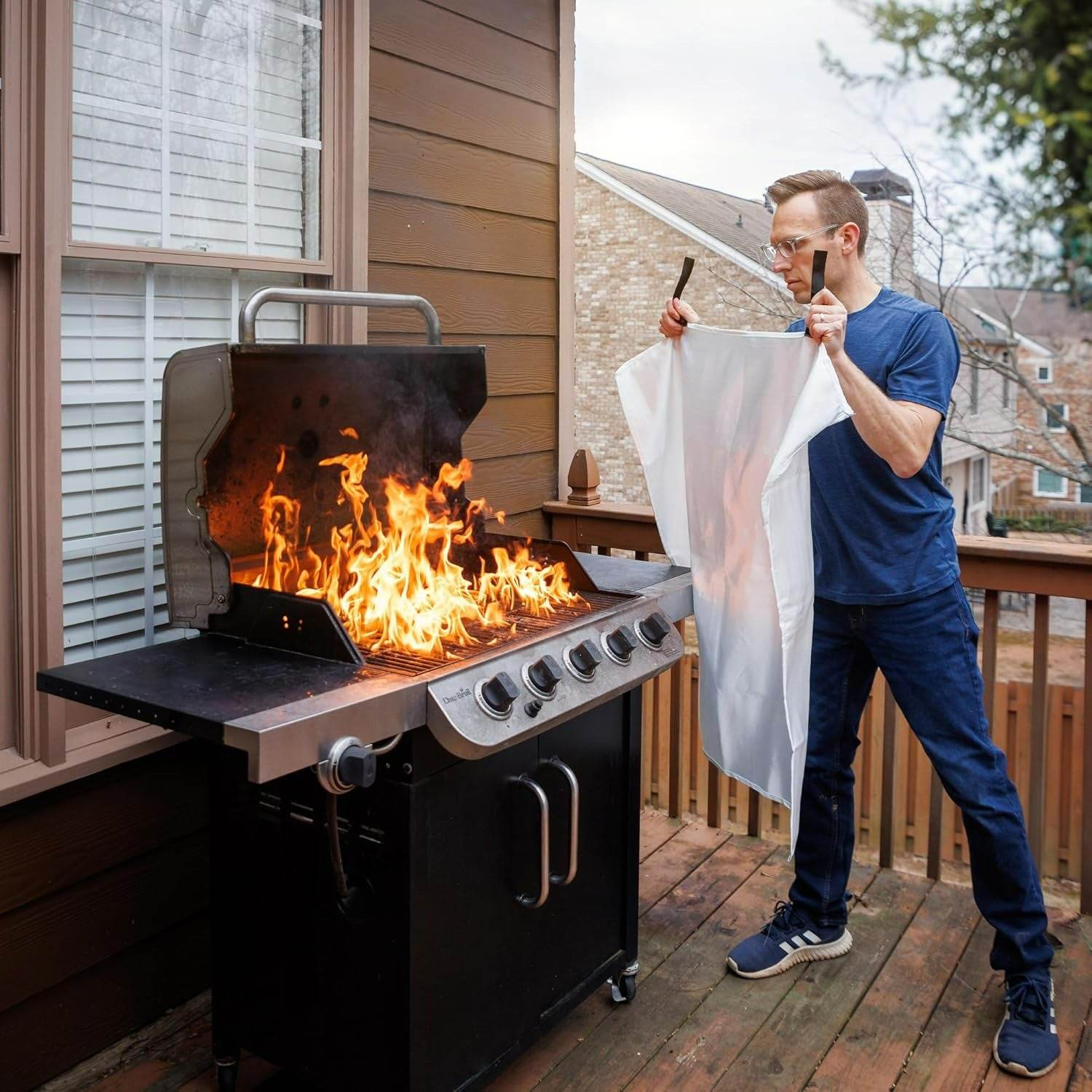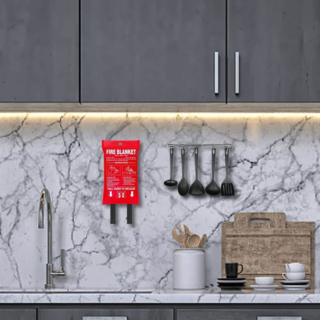 Our home fire blanket comes with 2 hanging holes for hooks to avoid the hassle of finding a storage location. Hang it in a convenient place like your kitchen or front door for easy access in an emergency.
