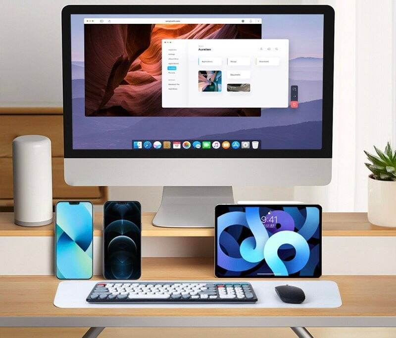 The keyboard can connect wirelessly. The keyboard has a designated slot or area where a smartphone can be placed, for easy access or to use the smartphone as part of the setup.