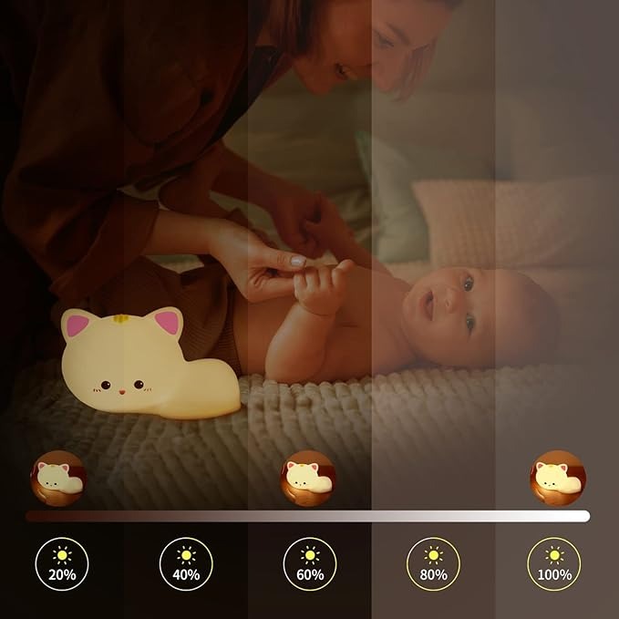 Safe & Soft Kids Night Light: 8 Colour changing Breathing Modes also will company with baby all night, super long battery life with 1 charge, it can be used for a whole day. Kids love this cute cat lamp crazily, and adults love it as well, as you can squeeze the cute night light and color-changing mode makes you feel less anxiety.