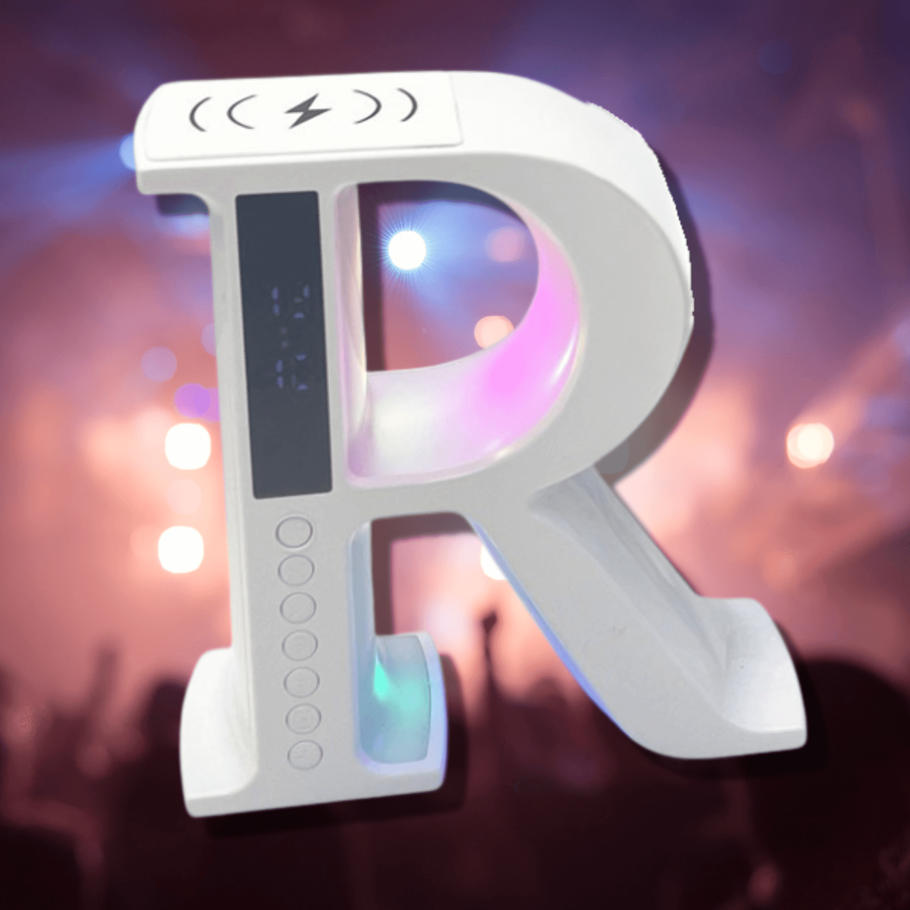 Product image may differ slightly from the actual item. Elevate your listening experience and power up your devices in style with the R-shaped LED Wireless Charging Speaker. Combining dynamic RGB lighting, wireless charging, and Bluetooth audio playback, this all-in-one gadget makes a striking centerpiece for desktops, nightstands, and meeting rooms.