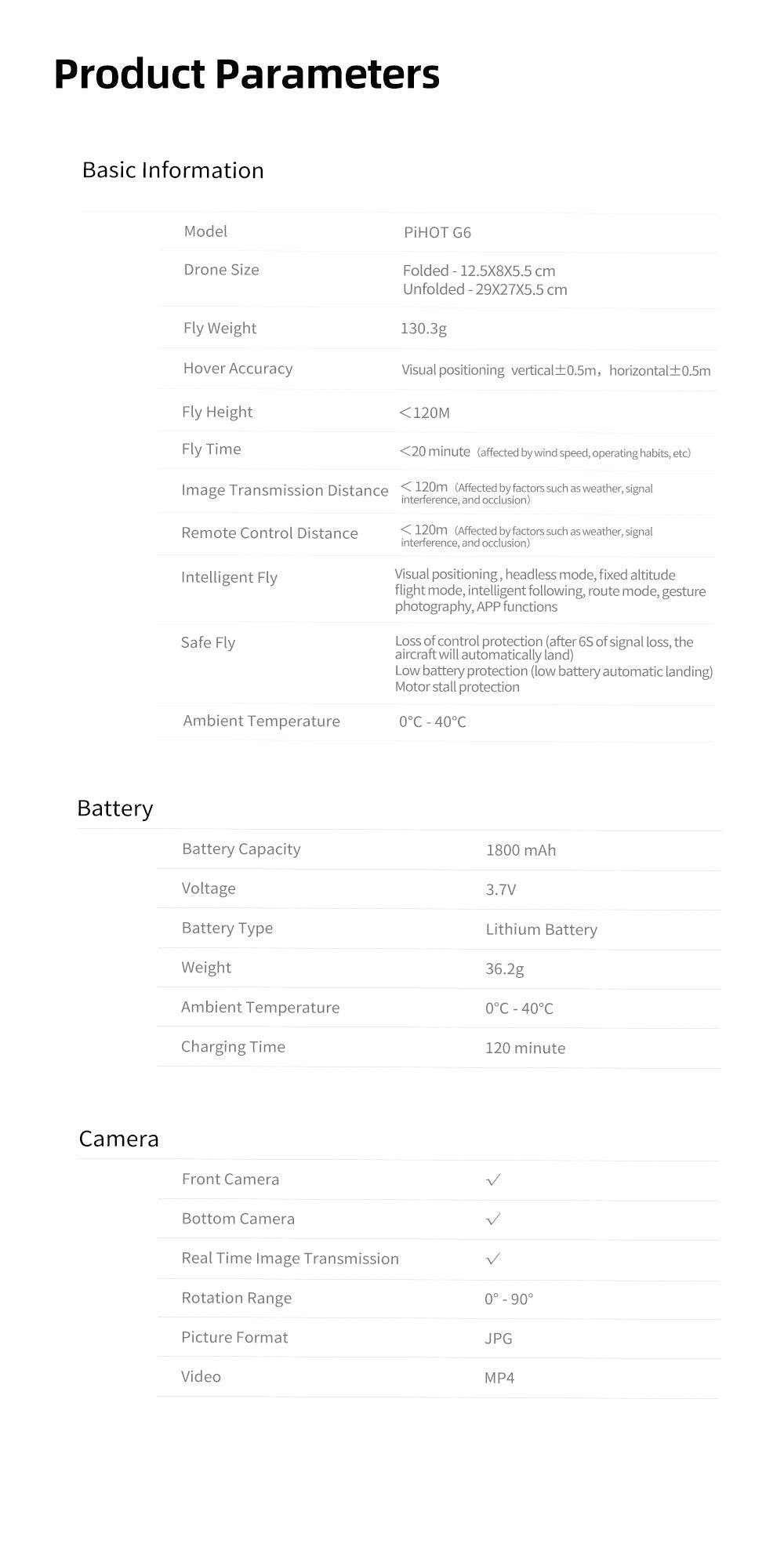Affordable innovation meets reliable performance. The PiHOT G6 series is designed for enthusiasts who want stability, precision, and creative aerial photography without breaking the bank.