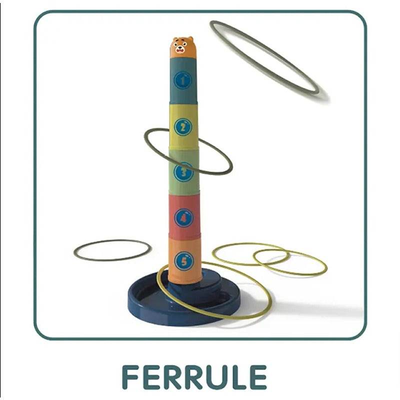 - Encourages development of fine motor skills and hand-eye coordination through stacking and interactive throwing.