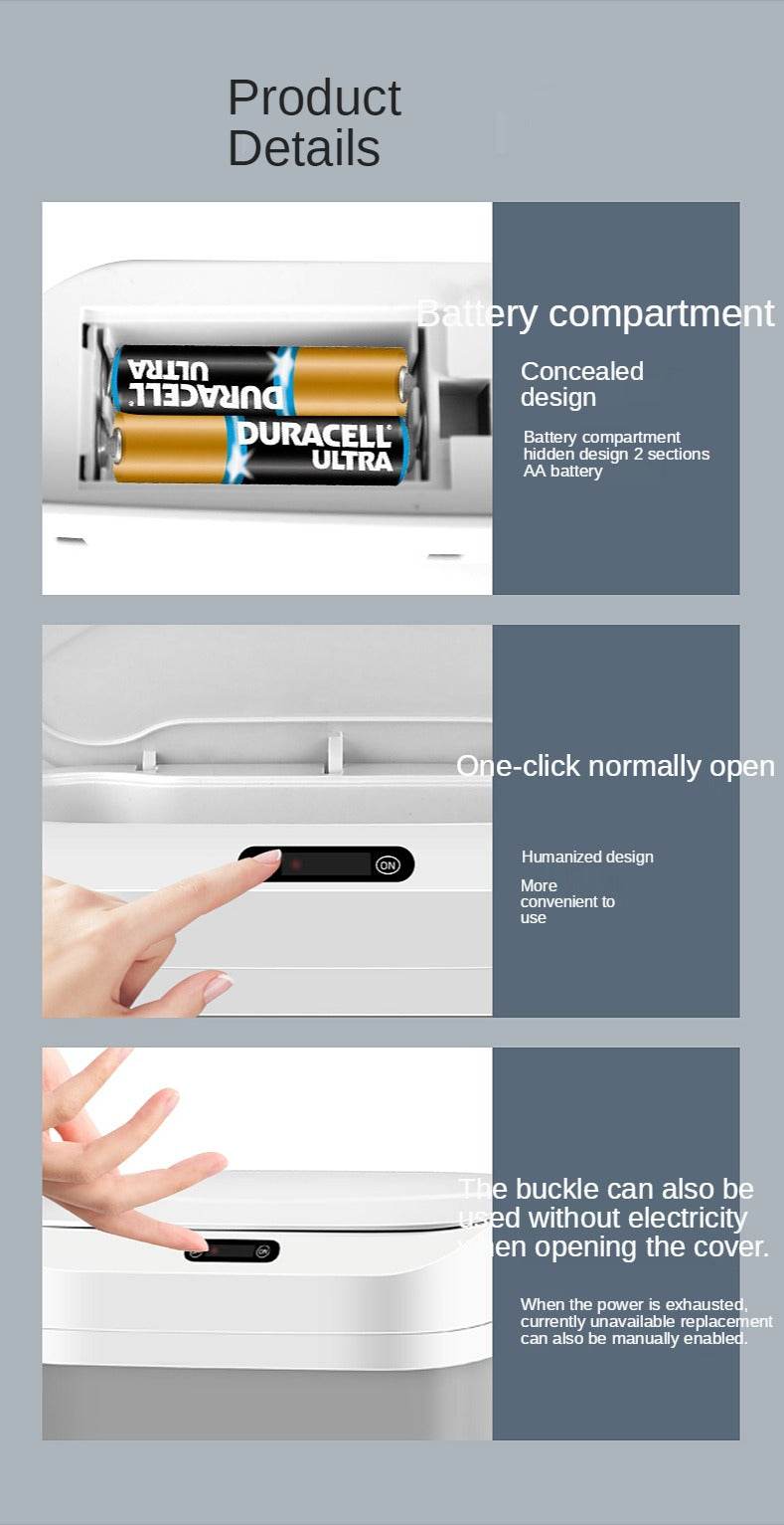 - Infrared detection and intelligent touch modes provide dual infrared touch detection for quick and silent opening, reducing the need to touch the lid