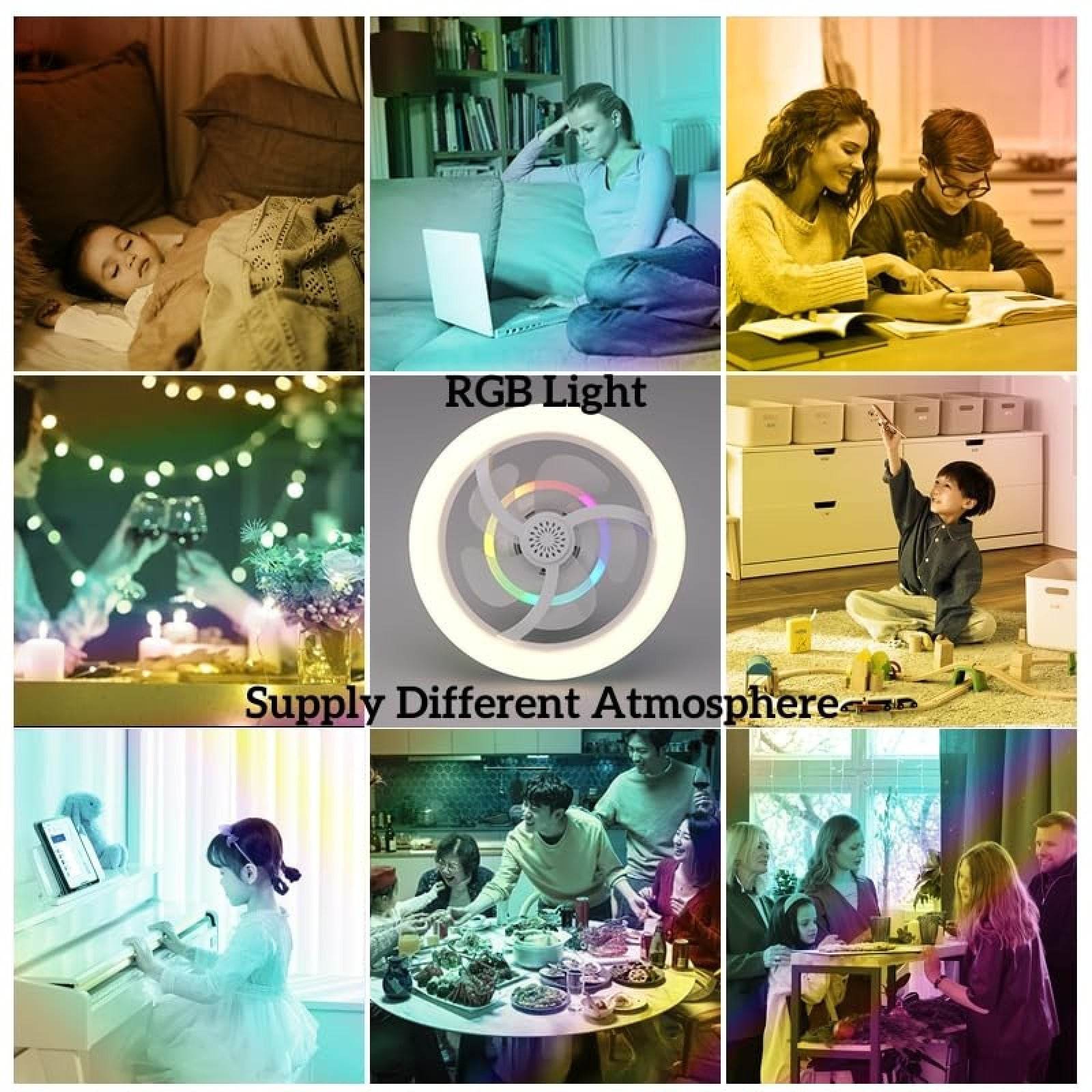 RGB light function of the fan light supplies 16 light modes for different atmosphere. Also the round disc in the front of the bulb fan face can pop out. You can place scent pods to freshen up the room.
