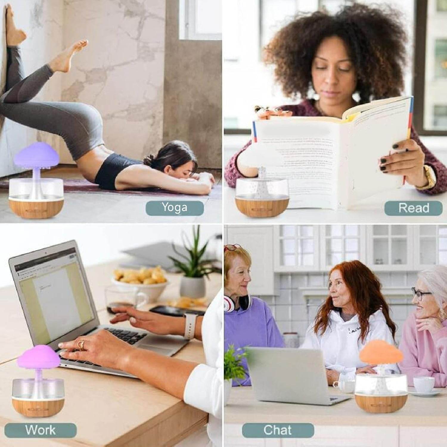 This lovely mushroom humidifier is designed with rain clouds to relieve dryness while imitating rain sounds through water droplets, creating a relaxing and comfortable environment for you to relax and fall asleep. This rain cloud humidifier is also an essential oil diffuser, you can add essential oils according to your needs, through the collision of water droplets to stimulate the emanation of essential oils, improve the quality of airflow and enjoy a good night's sleep. Press the button on the left side of the Rain Cloud humidifier to adjust the color of the LED light, and long press to start the gradient; the button in the middle is the on/off button; press the button on the right side to adjust the frequency of the water droplets falling low.