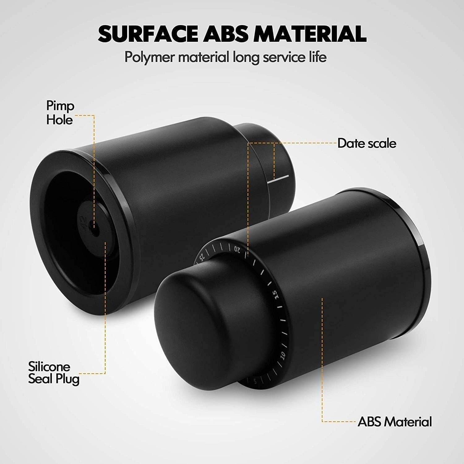 With built in vacuum value and is made of ABS And Food Grade Silicone, the shell is made of ABS, which makes the stopper lighter.